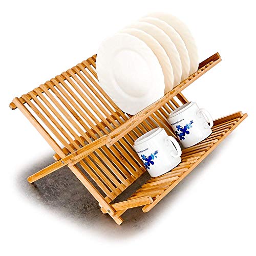 Este estable y robusto escurridor es práctico y natural, y le permite dejar secar con confianza sus platos, vasos, tazas y platos. Este otro modelo de madera de bambú es un práctico escurridor de platos plegable que se puede guardar fácilmente si se necesita: